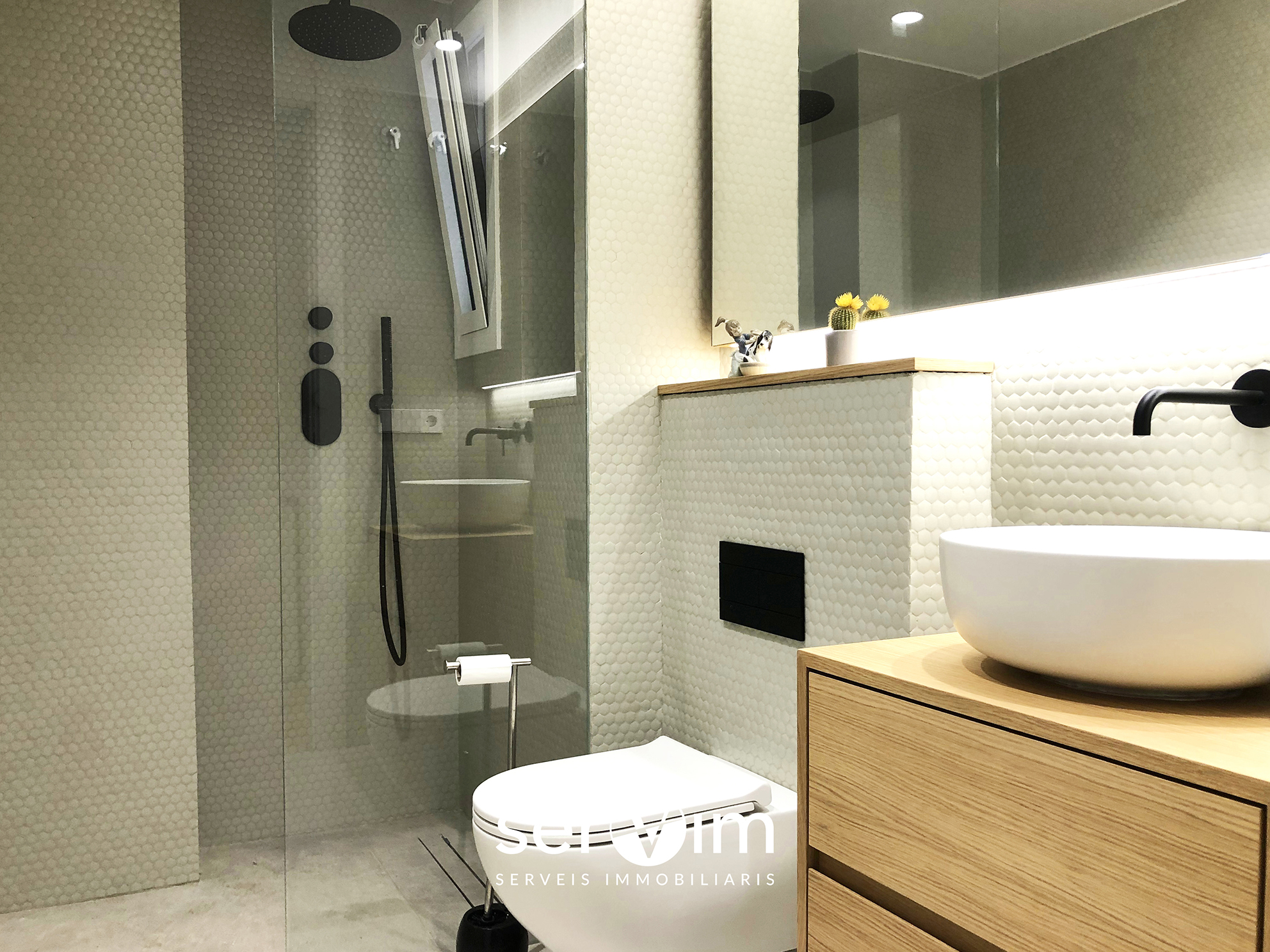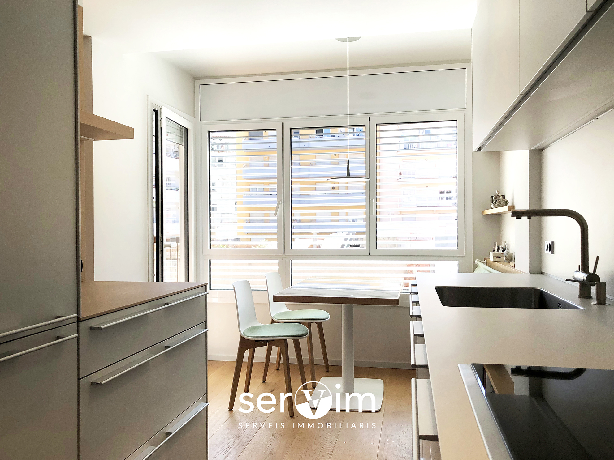 Tot l’habitatge ha estat reformat fins a l’últim detall, amb terres de gres porcellànic imitació fusta, calefacció de terra radiant, aire condicionat, tancaments de doble vidre, banys de disseny, i amb tot mobiliari fet a mida per aprofitar al màxim tot l’espai i seguint tonalitats de colors neutres.